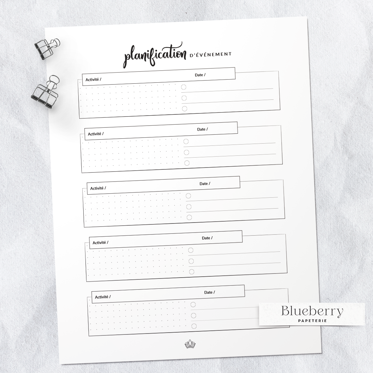 Conçue par Blueberry Papeterie, une papeterie québécoise qui crée des outils pratiques et élégants pour t’aider à structurer ton quotidien avec simplicité et créativité.